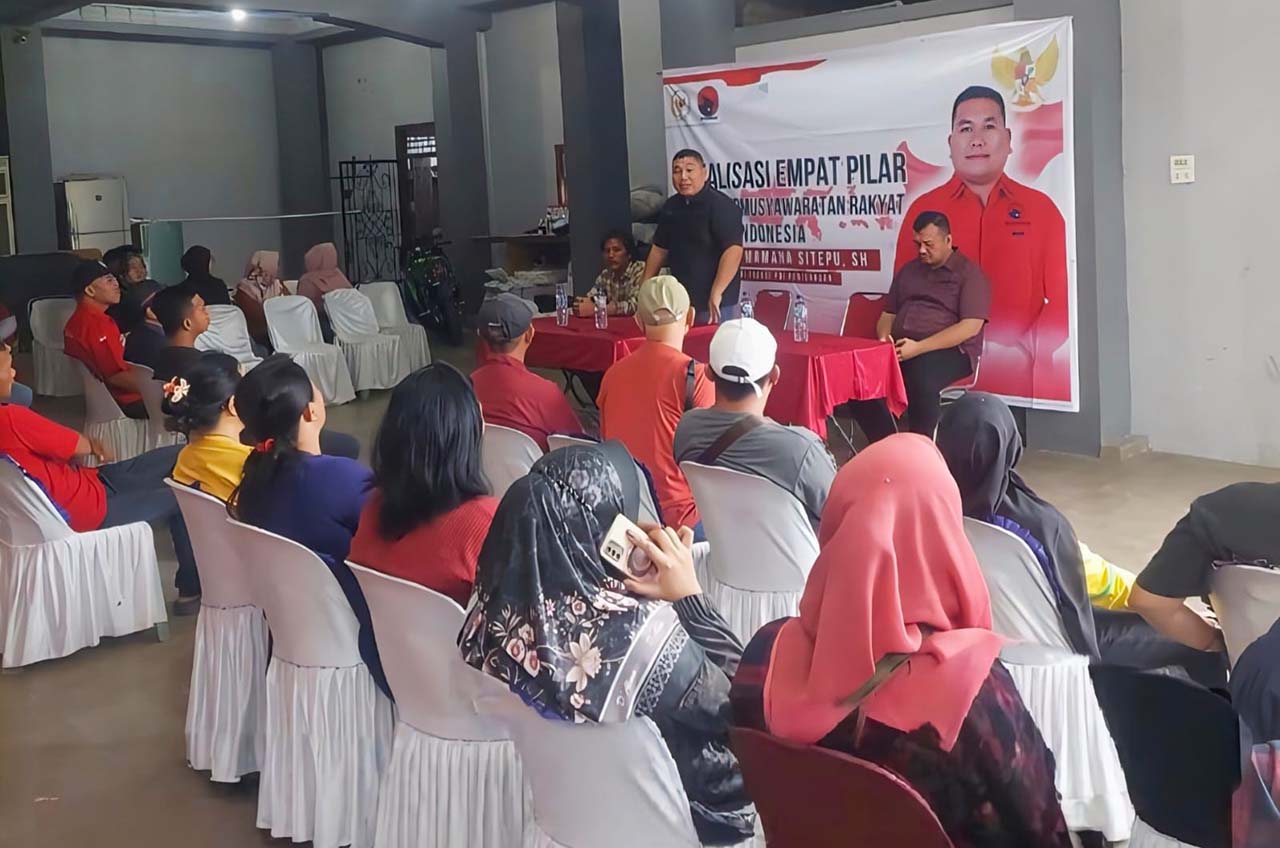 Penguatan nilai-nilai kebangsaan kembali digelar melalui kegiatan Sosialisasi 4 Pilar Kebangsaan MPR RI yang berlangsung di Kecamatan Binjai Barat, Kota Binjai, Sumatera Utara, pada 17 Maret 2026 pukul 12.00 WIB. Kegiatan ini dihadiri sekitar 150 peserta dari berbagai kalangan, mulai dari tokoh masyarakat, kader organisasi, hingga warga umum yang antusias mengikuti jalannya sosialisasi.