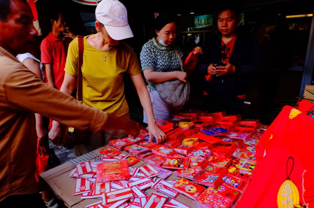 Di pasar tradisional ini, para pedagang menawarkan beragam kebutuhan khas Imlek, mulai dari pakaian tradisional, pernak-pernik dekorasi, Angpau hingga makanan khas seperti kue keranjang dan jeruk mandarin. Suasana pasar semakin semarak dengan dominasi warna merah dan emas, yang dipercaya melambangkan keberuntungan dan kebahagiaan
