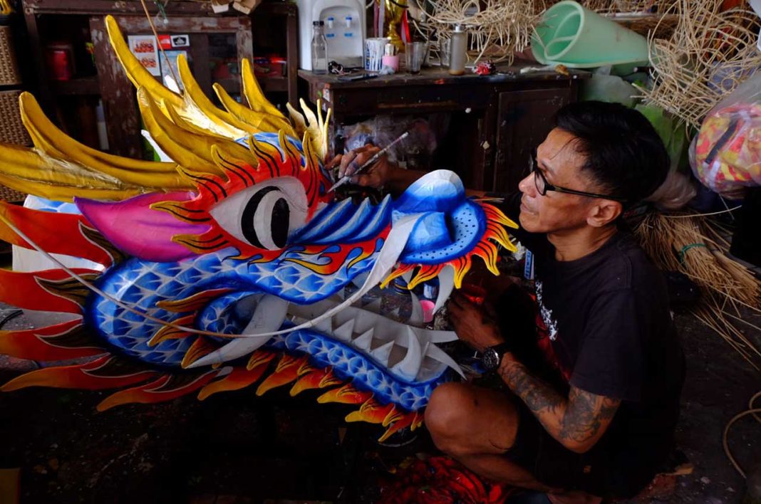 Produksi barongsai dan liong berbahan baku imprt tersebut diselesaikan dalam waktu satu minggu dan di pasarkan ke sejumlah daerah di Indonesia dengan harga jual Rp 6 juta untuk satu set barongsai dan Rp 9 juta untuk saru ser liong. Foto : Xposeindonesia/Dudut Suhendra Putra.