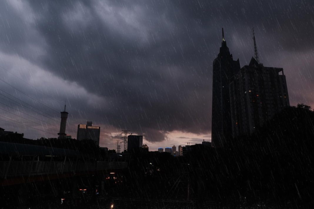 Awan mendung menyelimuti kawasan Senayan, Jakarta Pusat, Kamis (25/12/2025). Badan Meteorologi, Klimatologi, dan Geofisika (BMKG) mengingatkan potensi hujan lebat di sejumlah wilayah Indonesia pada periode 25 Desember 2025 hingga 1 Januari 2026. Kondisi ini dipicu oleh dinamika atmosfer, salah satunya peningkatan aktivitas monsun Asia yang berkontribusi terhadap pertumbuhan awan hujan secara signifikan. BMKG mengimbau masyarakat untuk meningkatkan kewaspadaan terhadap potensi cuaca ekstrem, termasuk hujan intensitas tinggi, angin kencang, dan risiko bencana hidrometeorologi.
