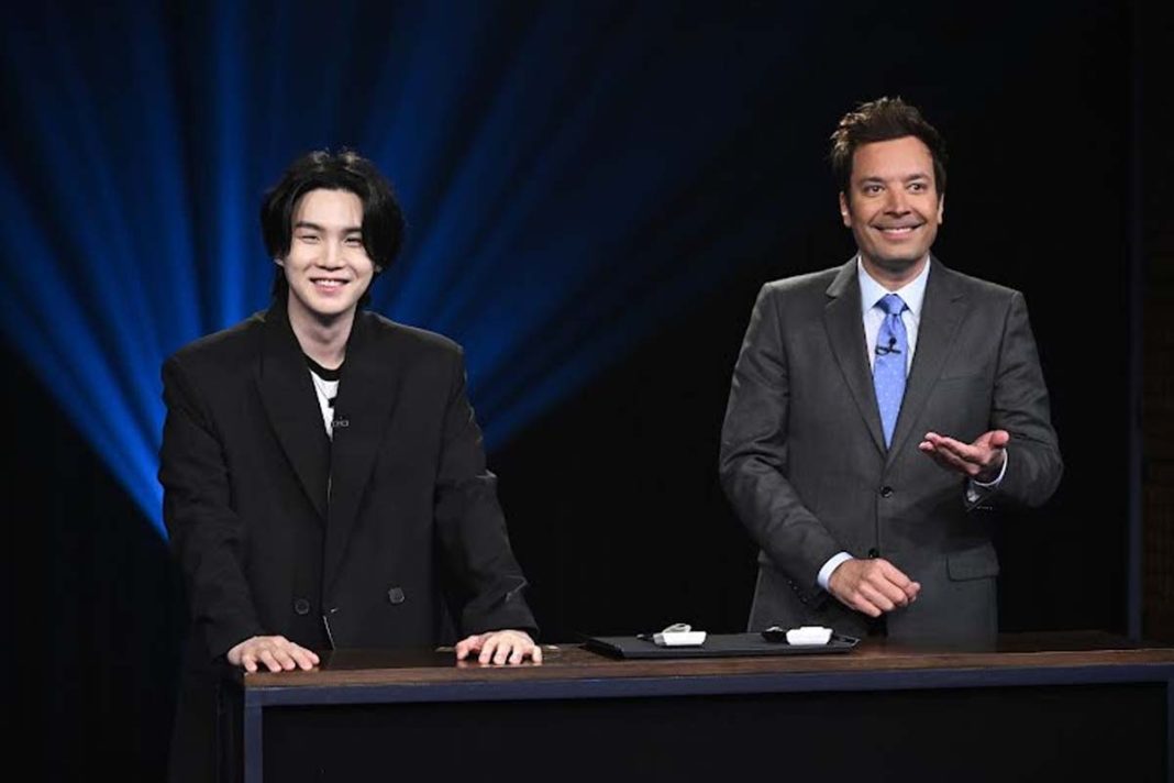Usai sukses besar menyelenggarakan tour show di New York, Suga BTS diundang masuk studio TV, kali ini untuk acara tak show Jimmy Falon.