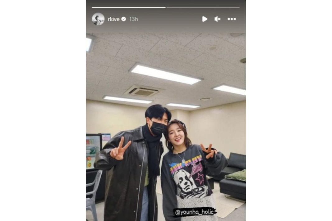 Dalam postingan itu, RM terlihat berpose dengan mata bersinar full senang di sebelah penyanyi Wanita, Younha.