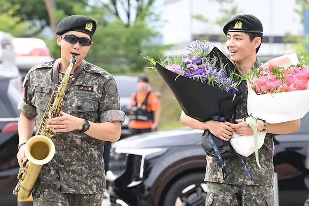 RM dan V BTS telah resmi menyelesaikan wajib militer pada Senin, 10 Juni 2025. Keduanya tampil sehat dan disambut hangat oleh ARMY. RM bahkan kembali memainkan saksofonnya seperti saat Jin keluar dari militer, membuat suasana semakin meriah.