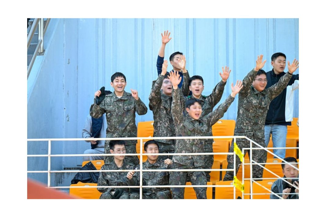 Pada tanggal 31 Maret, Taehyung aka V BTS membuat kejutan. Ia dengan pengawalan, muncul di stadion kandang Gangwon FC. Sesekali wajah tampannnya sengaja diperlihatkan panitia di layar raksasa. Memperlhatkan beragam ekspresi, bersama sejumlah rekan prajurit.