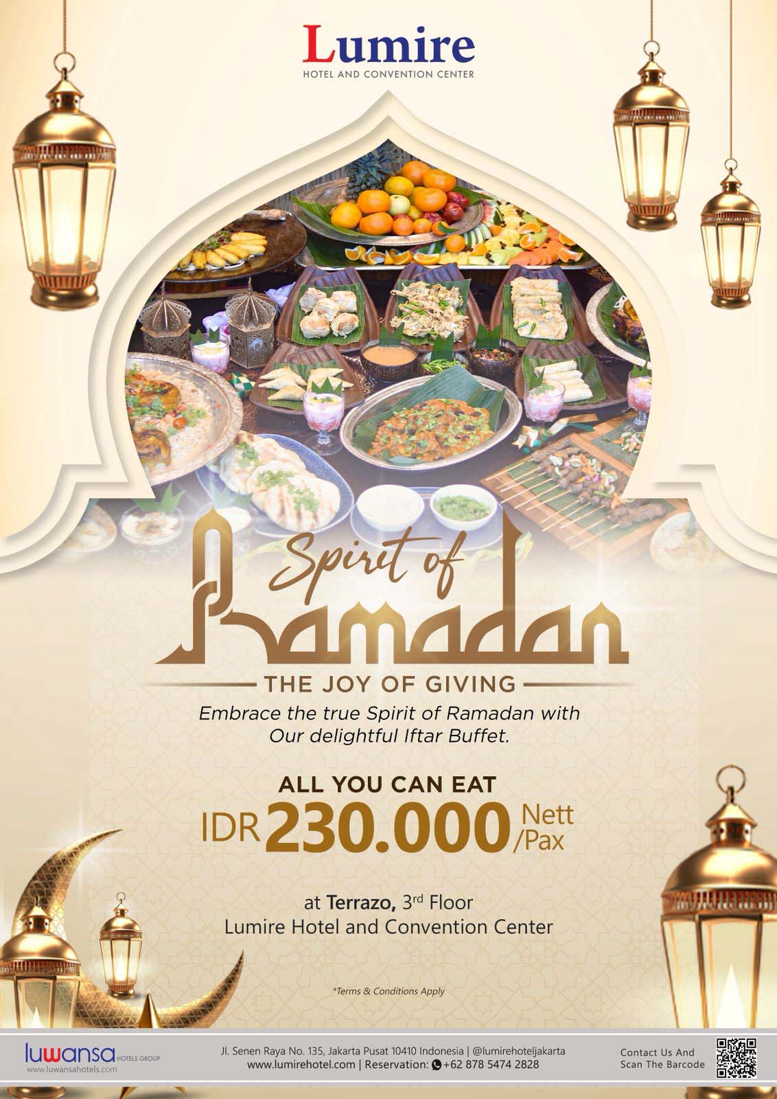 Menyambut bulan suci Ramadan 2026, Lumire Hotel Jakarta menghadirkan program berbuka puasa spesial yang memadukan kekayaan cita rasa, suasana hangat, serta semangat kebersamaan. Mengusung tema “Spirit of Ramadan: The Joy of Giving”, hotel bintang empat di kawasan Jakarta Pusat ini menawarkan pengalaman iftar yang dirancang sebagai pilihan ideal untuk berbuka bersama keluarga, sahabat, maupun rekan kerja.