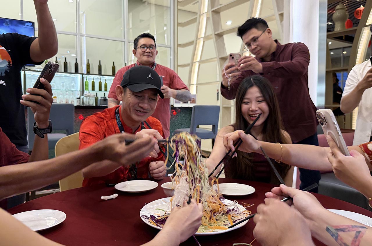 Acara dimulai dengan prosesi Yi Sang yang diikuti oleh seluruh tamu undangan. Ritual ini menjadi simbol doa akan kesehatan, kebahagiaan, dan kemakmuran di tahun yang baru. Aneka sayuran segar dan ikan mentah diaduk dan diangkat tinggi bersama-sama, menciptakan suasana penuh semangat sekaligus menggambarkan filosofi Imlek tentang harapan yang terus meningkat seiring langkah ke depan.